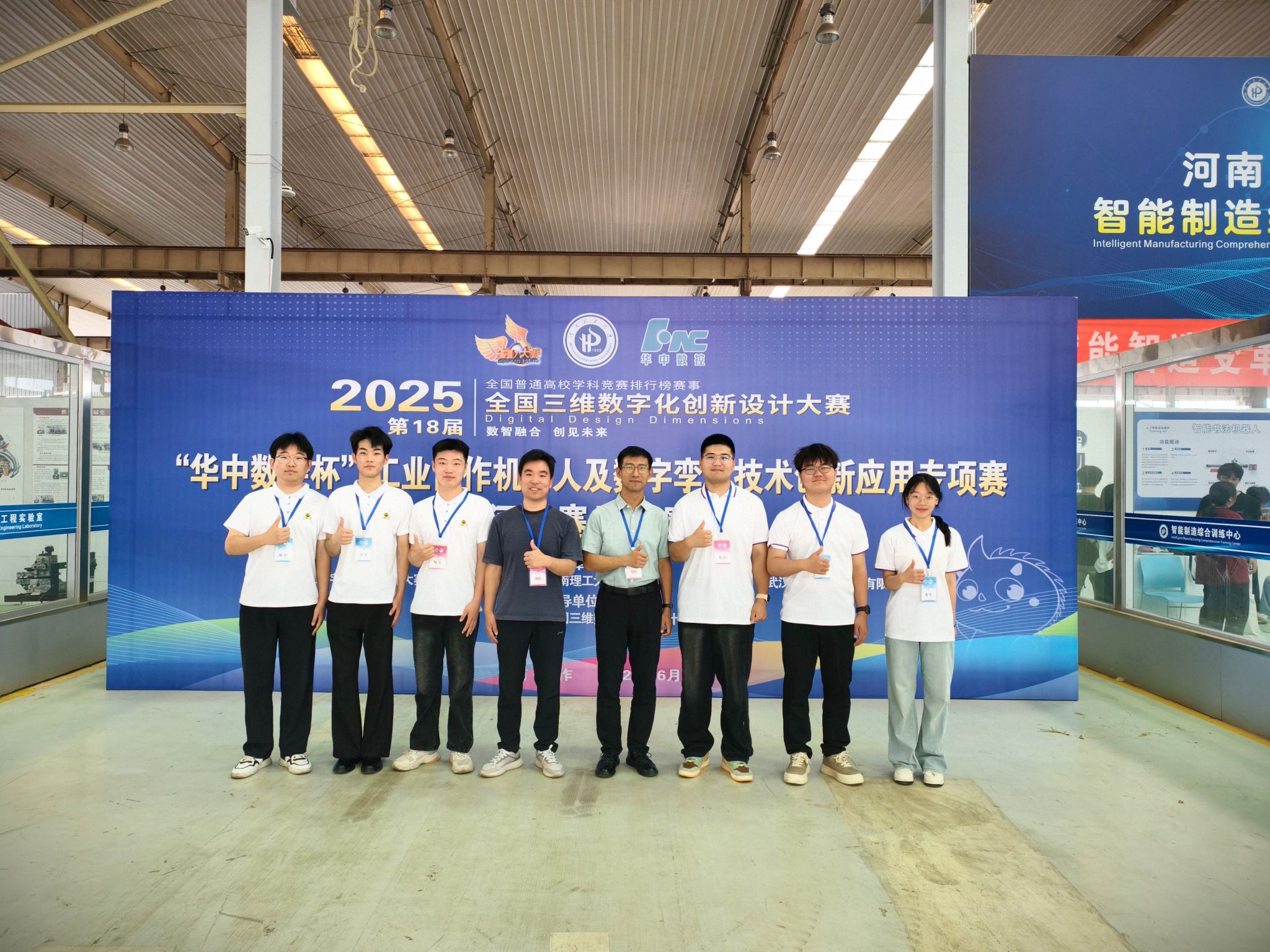 在2025第18届全国三维数字化创新设计大赛“华中数控杯’工业协作机器人及数字孪生技术创新应用专项赛”河南赛区选拔赛中成绩斐然,满载而归,获得特等奖1项、一等奖2项、二等奖5项的优异成绩。