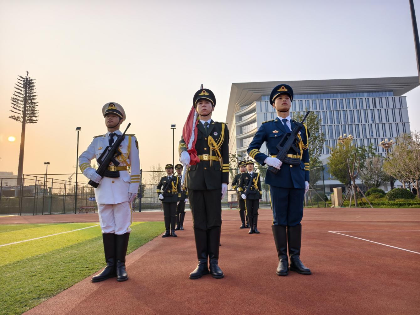 为引导全体师生以饱满的精神状态投入到新学期学习生活中,9月1日上午,校团委举行新学期开学升旗仪式,200余名师生代表参加。上午7时许,英姿飒爽的国旗护卫队迈着铿锵有力的步伐护送国旗入场。在雄壮的国歌声中,五星红旗冉冉升起,全体师生面向国旗行注目礼,齐声高唱国歌,现场氛围庄严神圣。
